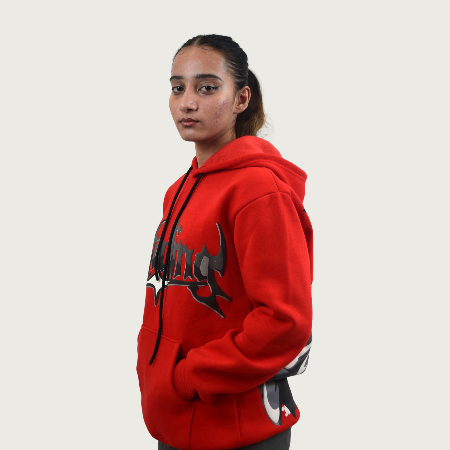 The sleeves feature a stunning autumn leaves pattern, adding a natural, earthy vibe that contrasts beautifully with the jacket’s bold urban aesthetic. This unique detail ties the piece to the changing seasons, blending the wild beauty of nature with contemporary streetwear.